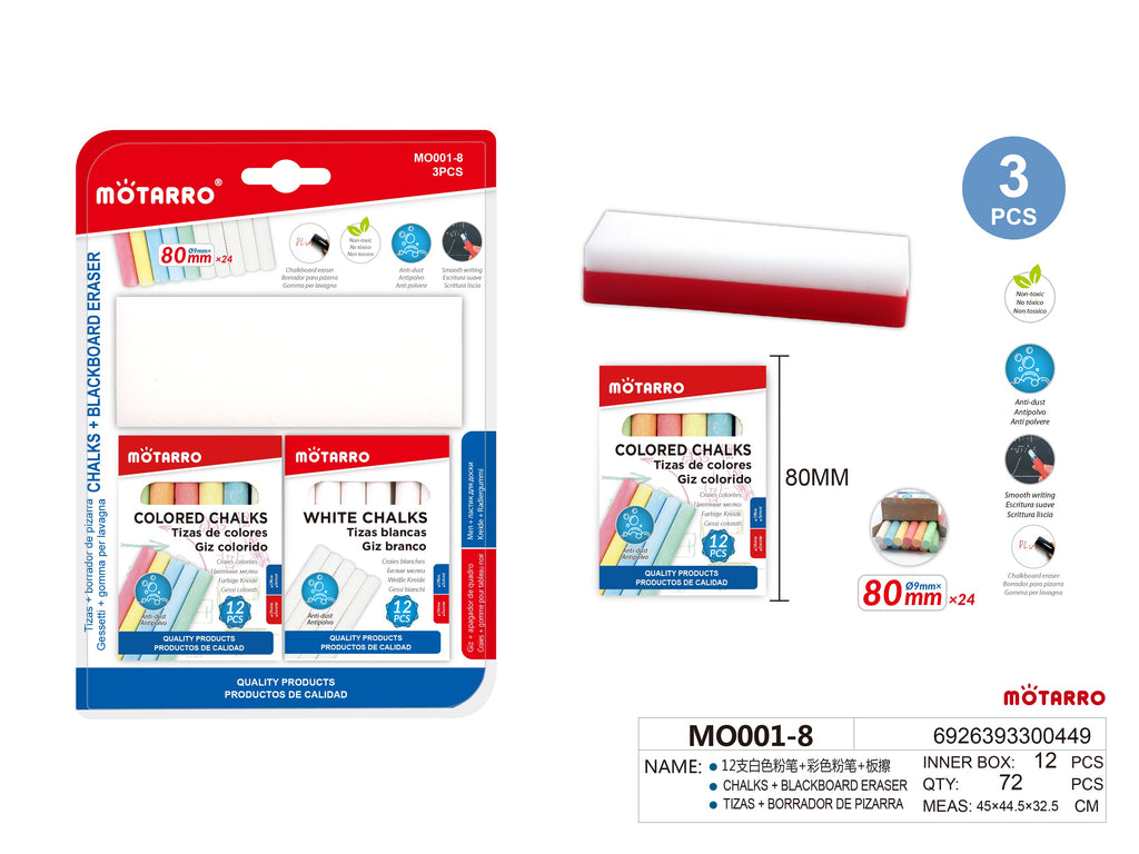 TIZAS+BORRADOR DE PIZARRA 12++